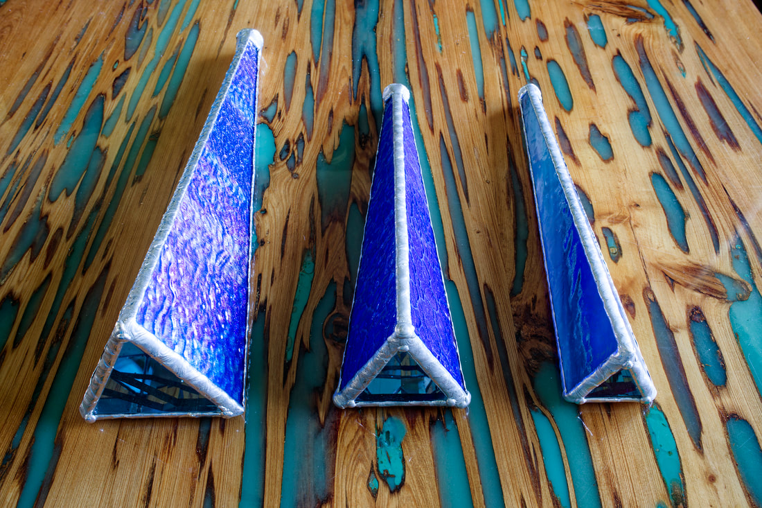 Each kaleidoscope is handmade using different colors on the inside as well as the stained glass on the outside. The patterns for each style remain generally the same, they just vary in sizes and colors because each one is unique. Custom colors are sometimes available upon request for an addition price.